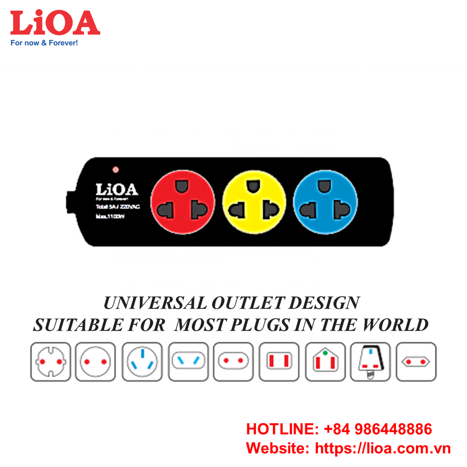 Lioa เต้าเสียบต่อขยาย1100W รุ่นใหม่3TN5.3.5ปลั๊ก3ช่องใช้ได้5A กับสหราชอาณาจักรเราสหภาพยุโรปแอฟริกาใต้