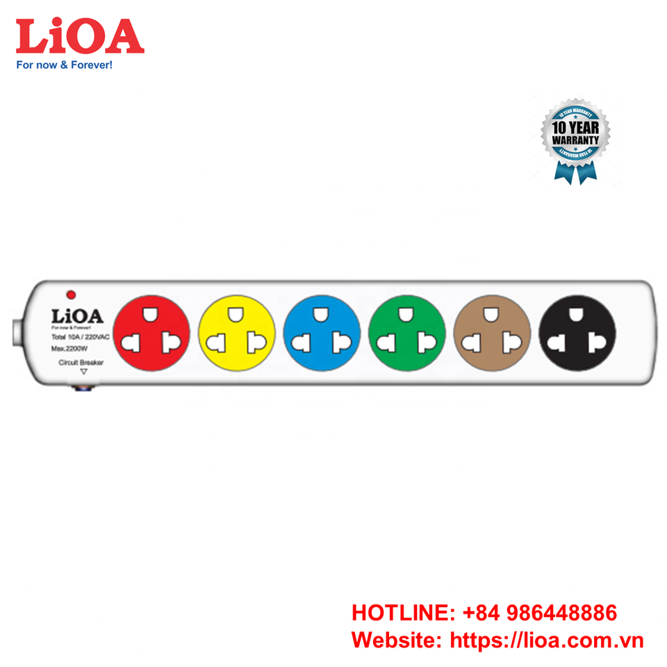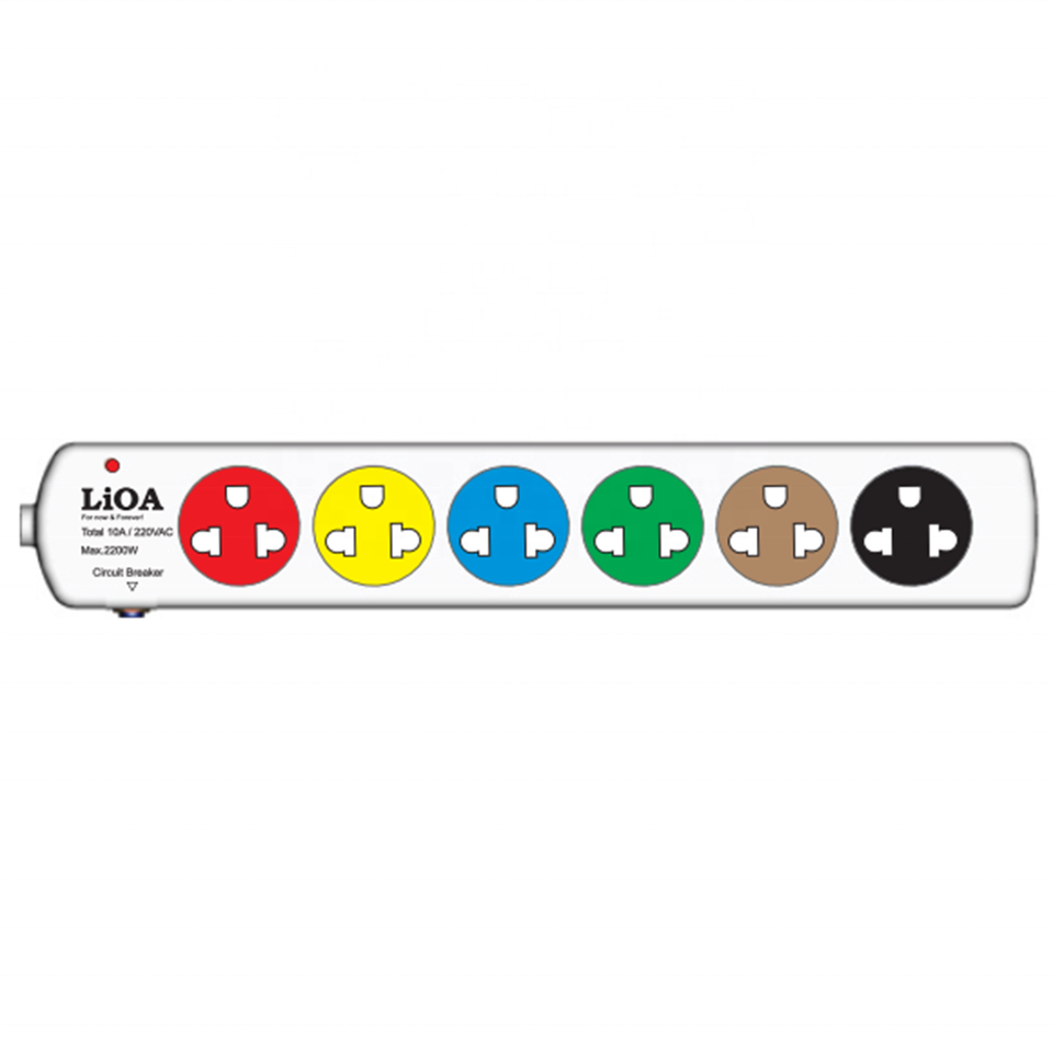 Lioa เต้าเสียบ6ช่องยาว3เมตรรุ่นใหม่พร้อม6SN3.2.10รุ่นป้องกัน UK/EU 2200W/10A CB