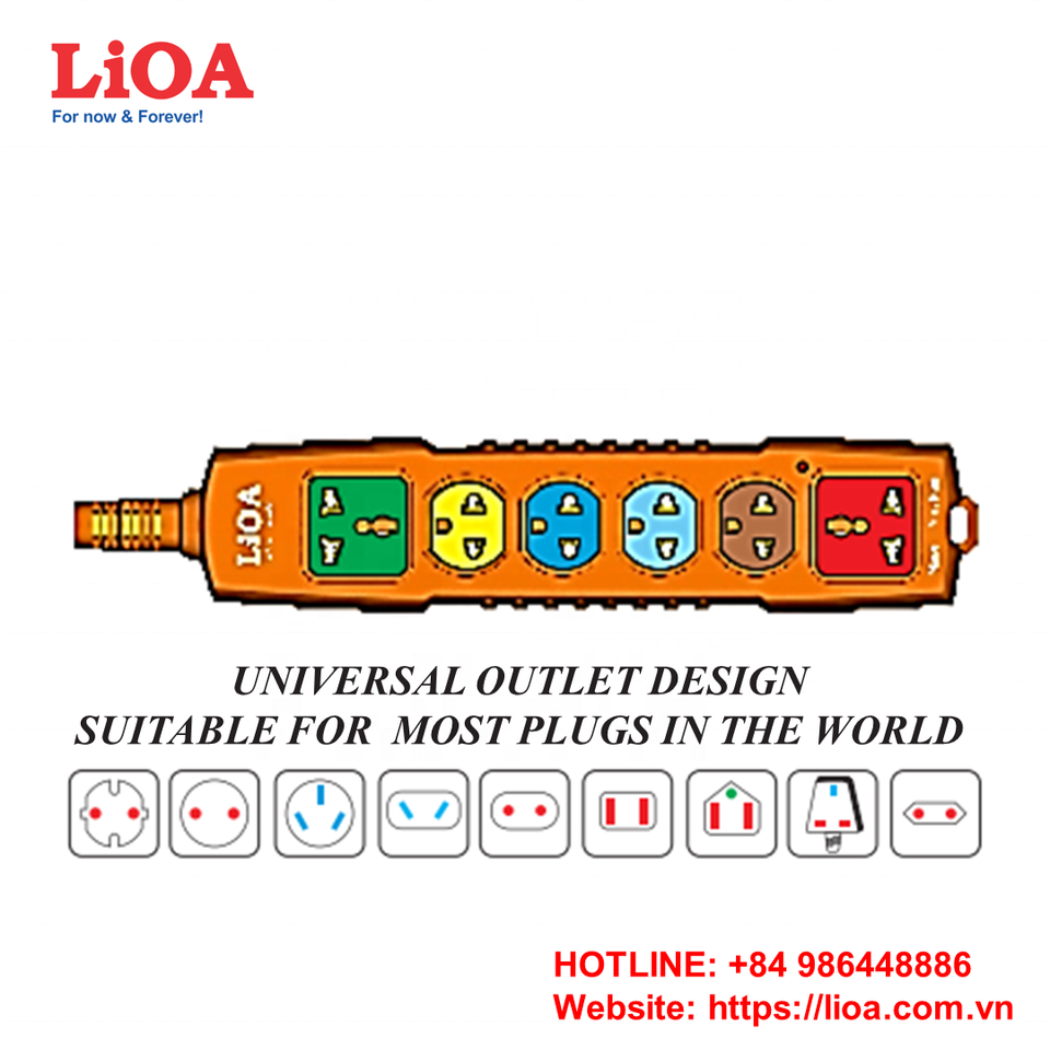 Lioa เต้ารับขยายพิเศษ5ช่อง20A 6P-3M/สายไฟ3-20A ปลั๊กมาตรฐาน3M สีส้มสีขาว