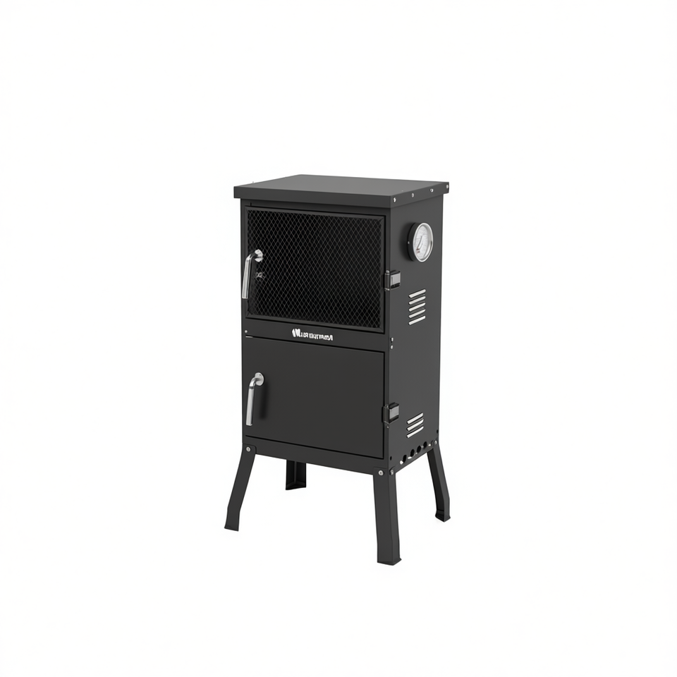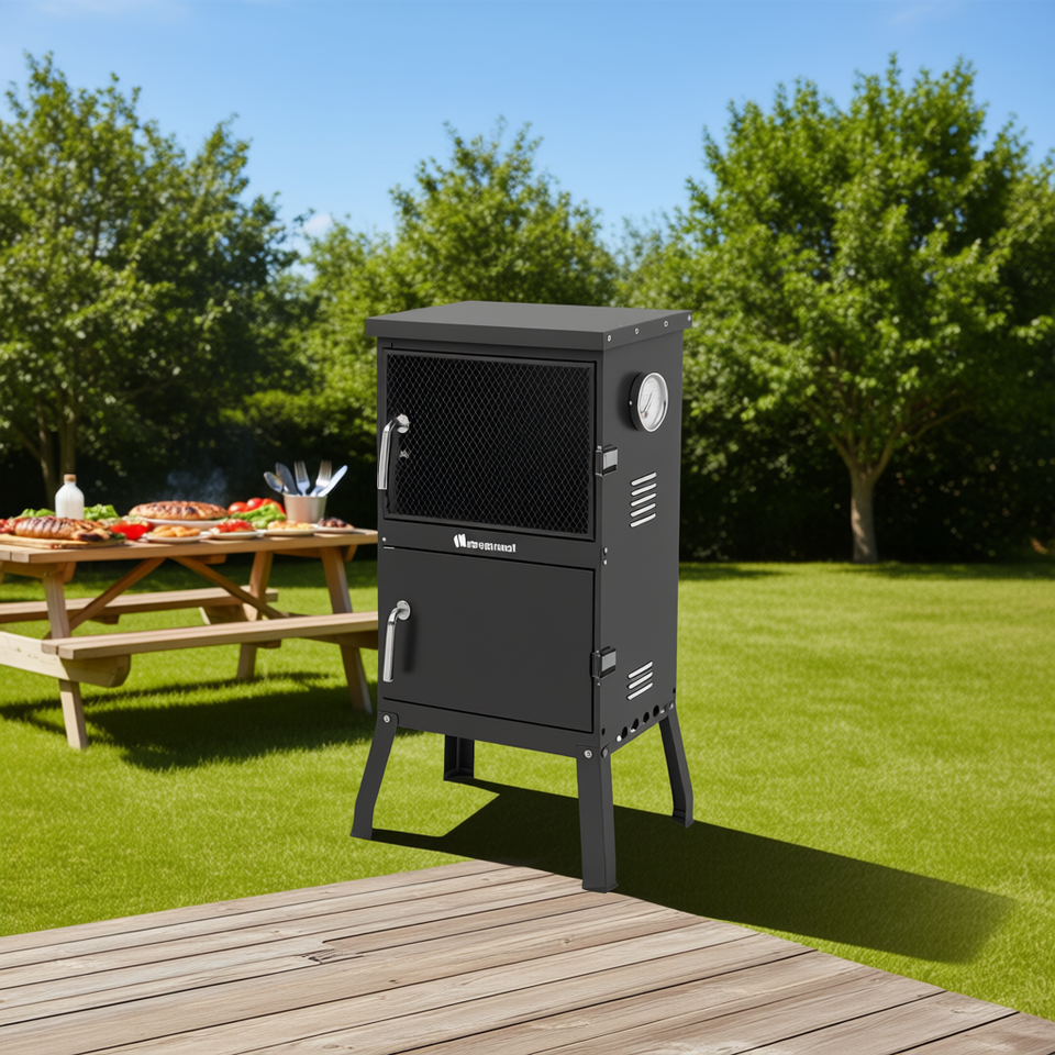 Lia Outback Charcoal Smoker Double Door Steel Porcelain Enameled With Thermometer For BBQ Grilling