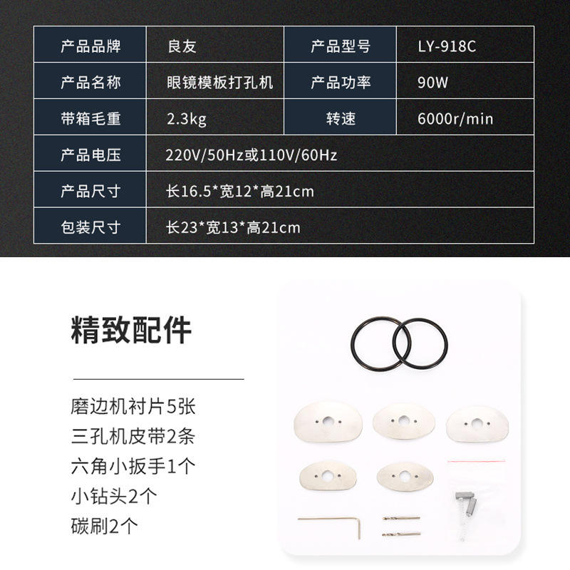 เครื่องเจาะเลนส์แว่นตา Liangyou รุ่น 918C 220V 90W แบบตั้งโต๊ะ สำหรับร้านแว่น