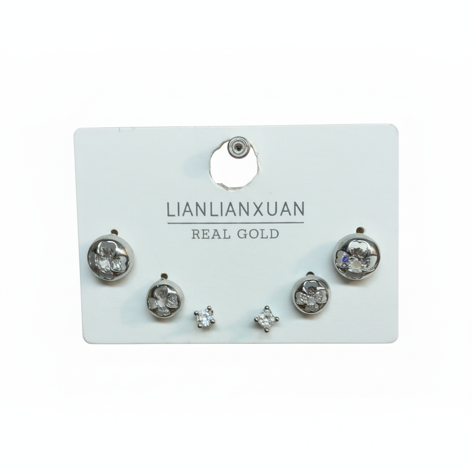 ต่างหูเงินทรงดอกไม้ประดับเพชรซิร์คอน ชุดของขวัญเครื่องประดับแฟชั่นสำหรับผู้หญิง Lianlianxuan