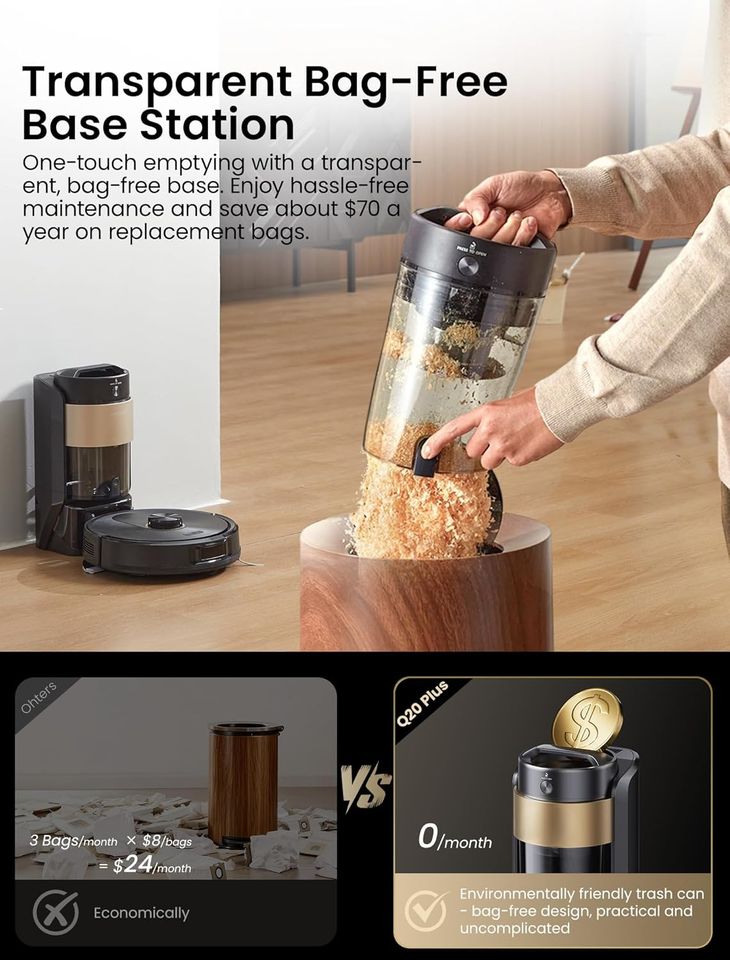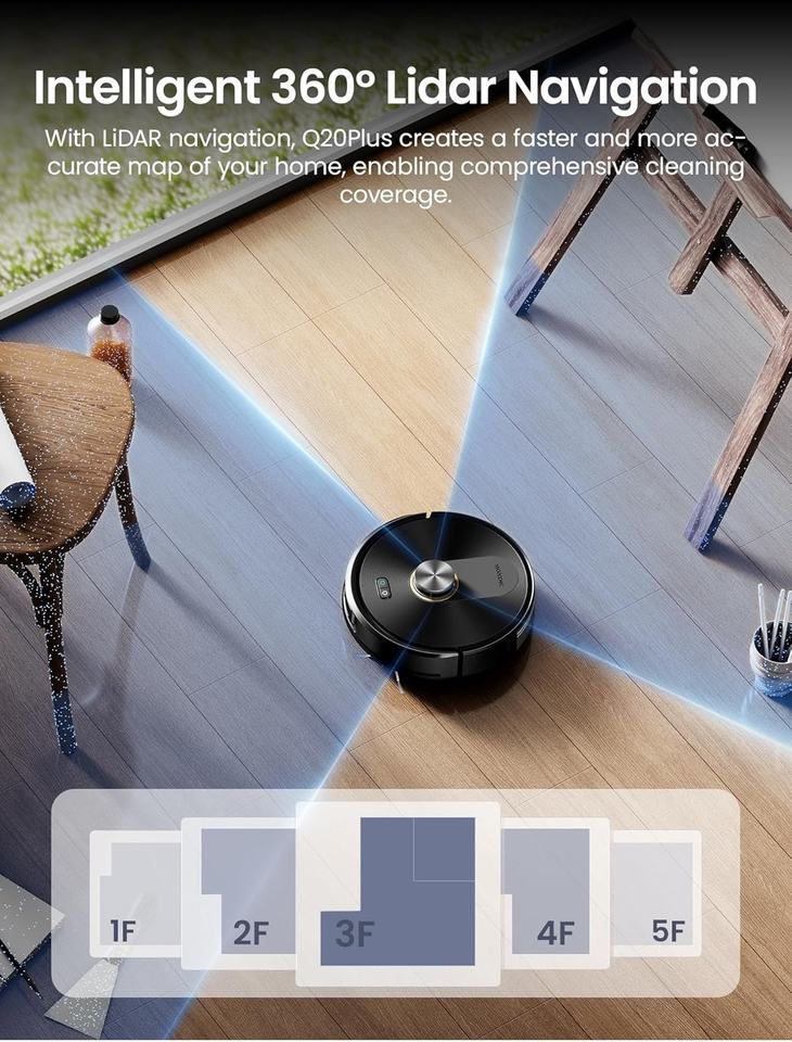 หุ่นยนต์ดูดฝุ่นถูพื้น Liberbot Q20 Plus พร้อมแท่นเก็บฝุ่นอัตโนมัติ แรงดูด 10000Pa ใช้งานได้นาน 200 นาที ระบบนำทางด้วย Lidar มอเตอร์ไร้แปรงถ่าน ไส้กรอง HEPA แบตเตอรี่