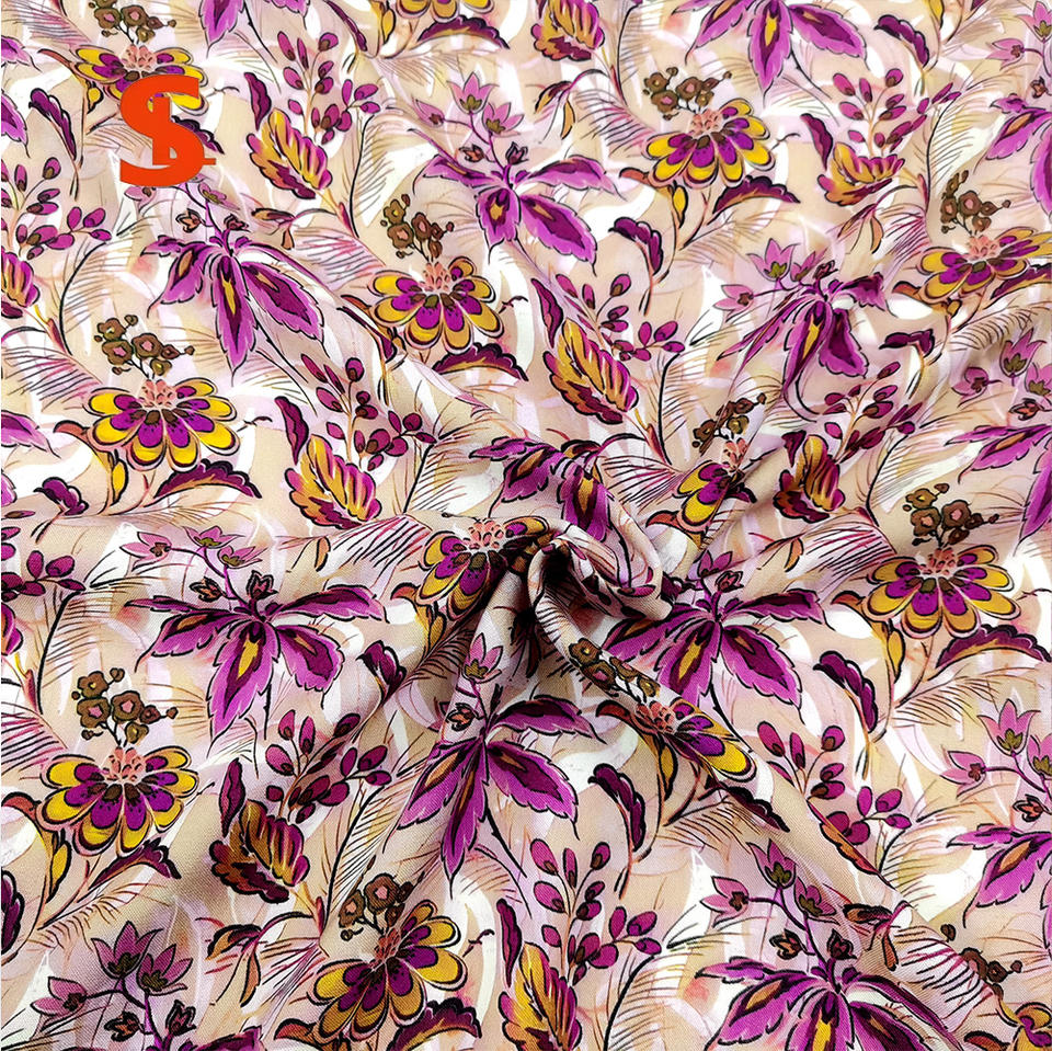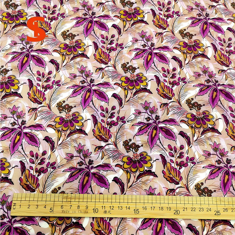 ผ้าป๊อปลินทอจากฝ้ายออร์แกนิกพิมพ์ลายสีม่วงสำหรับชุดเดรสเด็กผู้หญิง ชุดลำลอง น้ำหนักปานกลาง