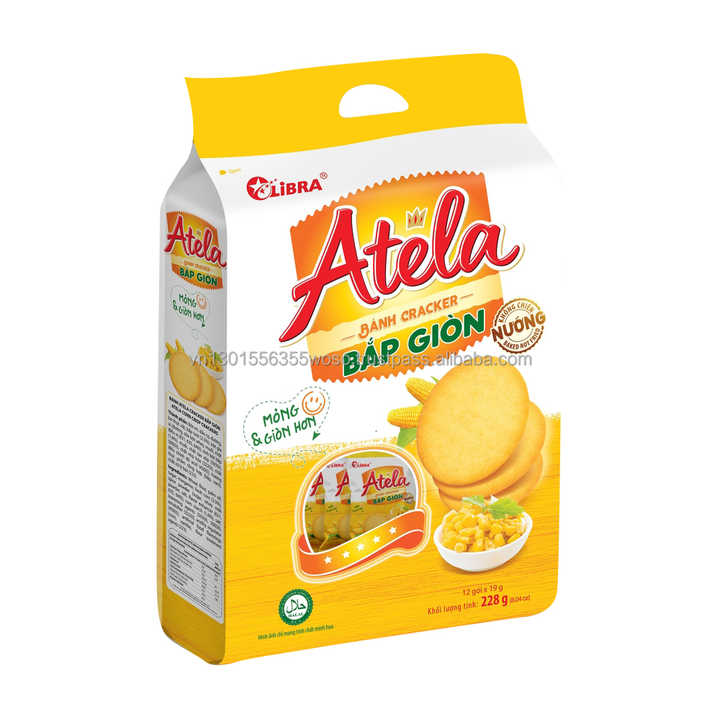Libra atela แครกเกอร์ข้าวโพดกรอบแพ็ค228กรัมบิสกิตรสหวานบรรจุในถุงเวียดนาม