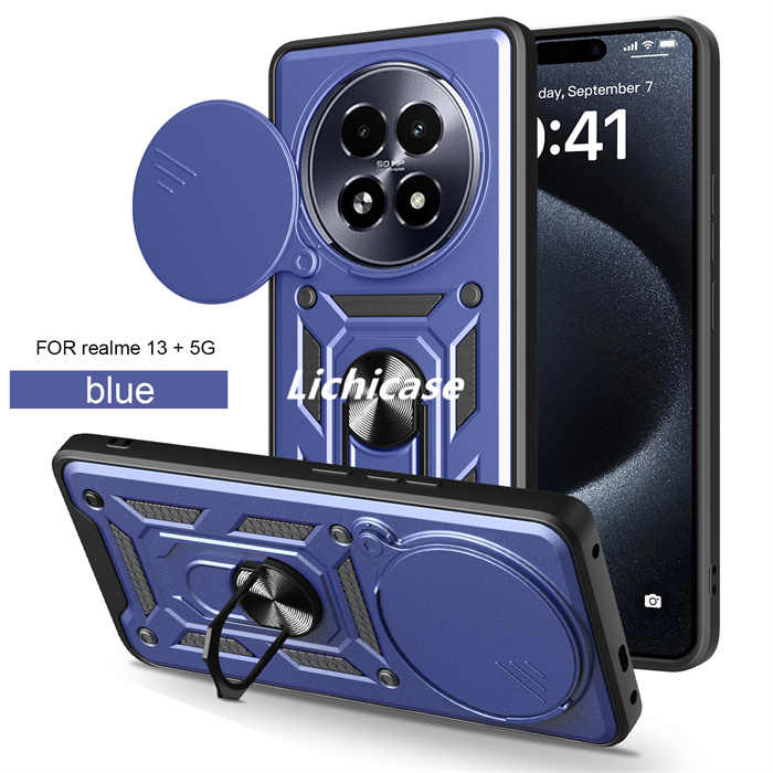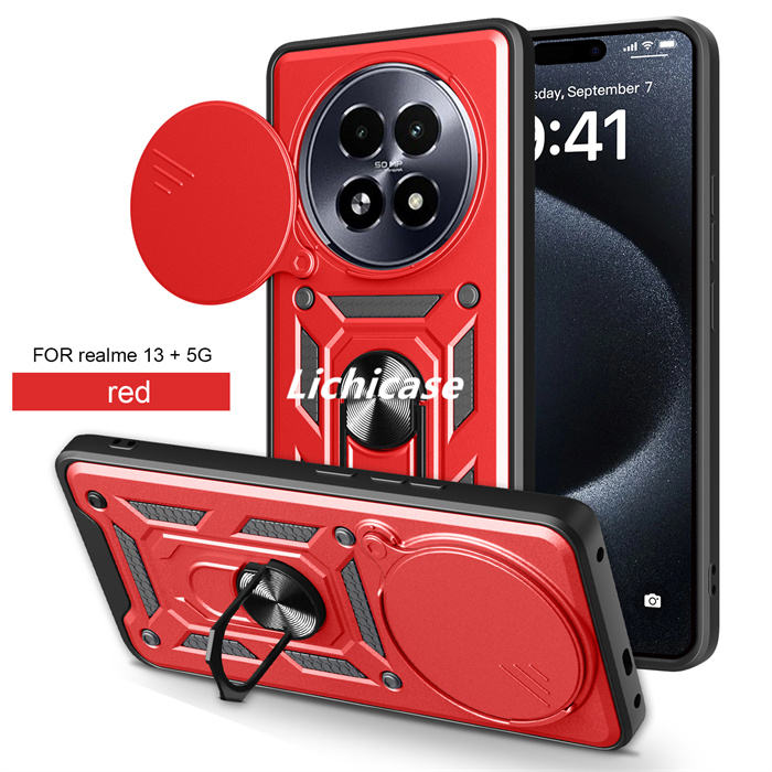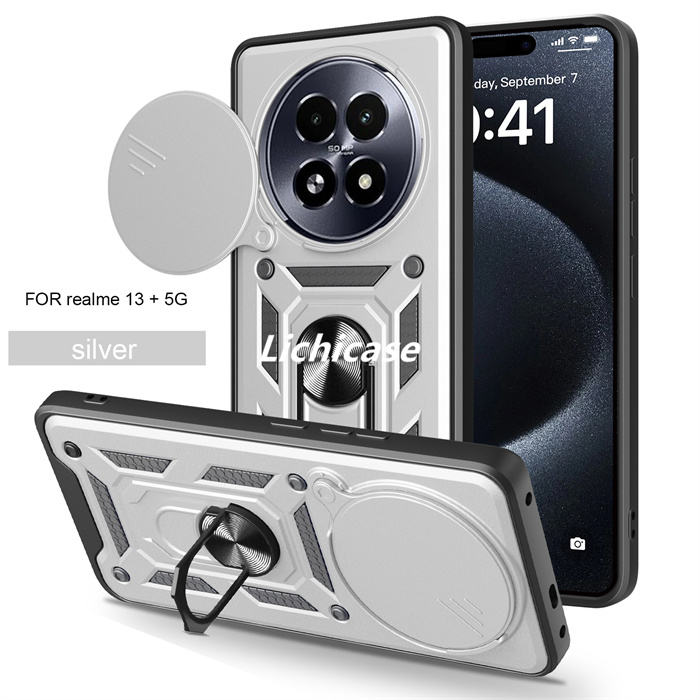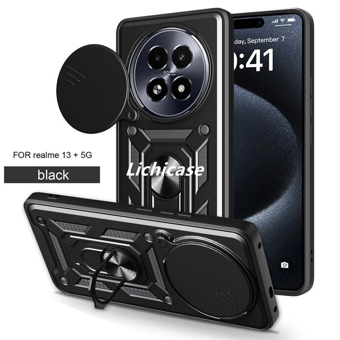 เคสโทรศัพท์กระจกหน้าต่างแบบกดสำหรับ Realme 14 Pro 5G มีห่วงยึดแม่เหล็กสำหรับรถยนต์
