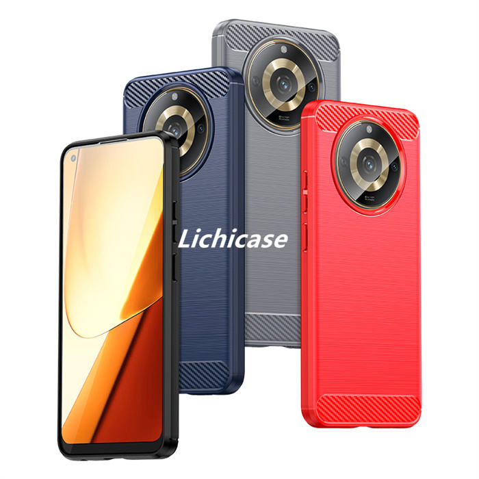 เคสมือถือเนื้อคาร์บอนไฟเบอร์ lichicase ลายขนแปรง TPU ป้องกันการตกสำหรับ realme 11 Pro PLUS แบบนิ่ม