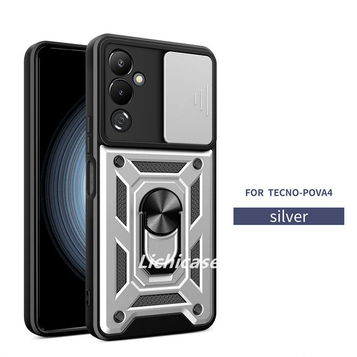 Lichicase เคสโทรศัพท์ TPU PC แบบมีขาตั้งสำหรับ Tecno Pova Neo 2,ฝาครอบด้านหลังกันกระแทกป้องกันแบบรวมทุกอย่าง