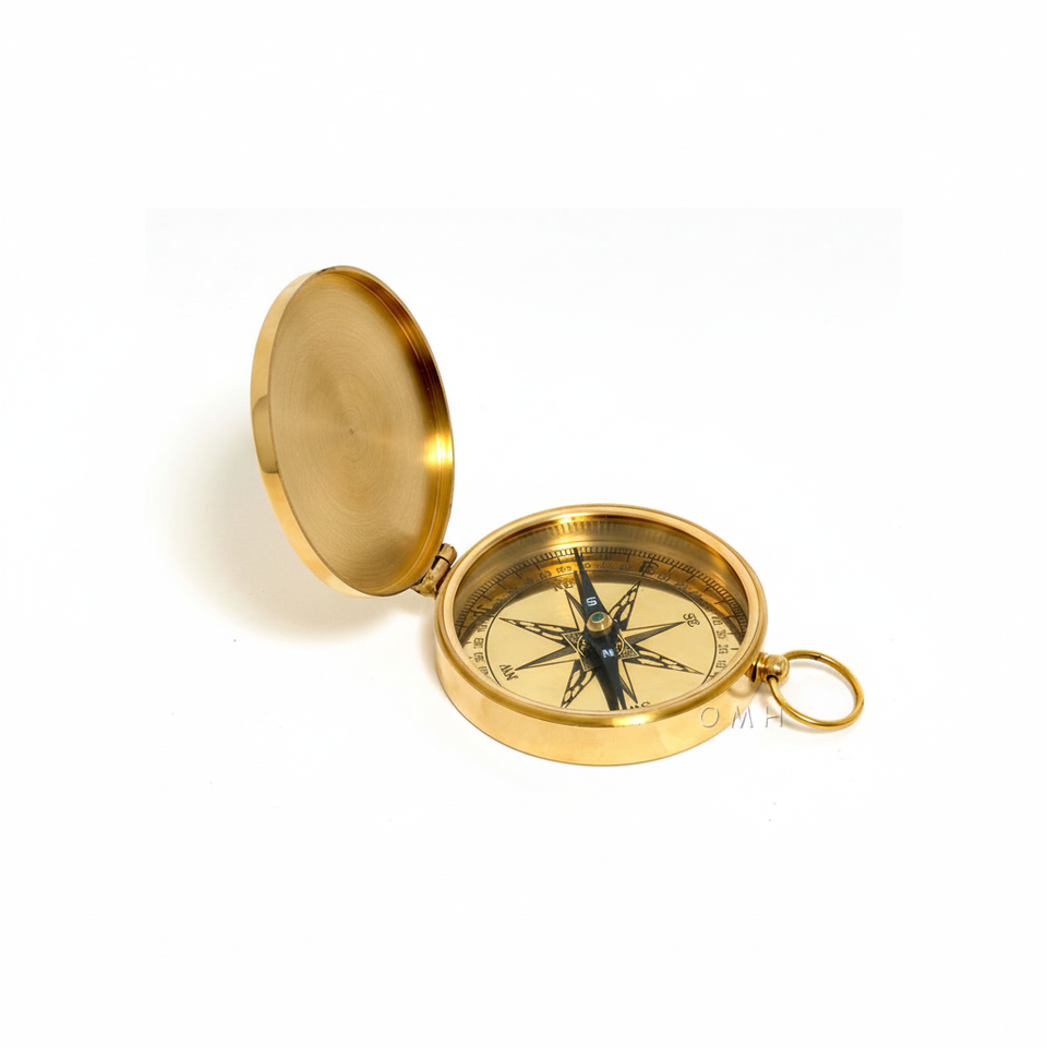 เข็มทิศทรงสี่เหลี่ยมผืนผ้าทองเหลืองสำหรับตกแต่งบ้าน สำนักงาน หรือจัดแสดงเพื่อการศึกษา (10.2x7.6x1.5 ซม.) ดีไซน์แนวชายฝั่ง น้ำหนักเบา