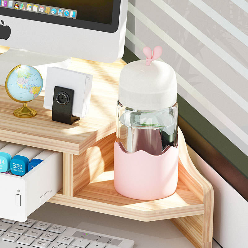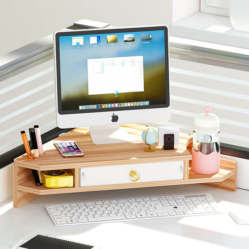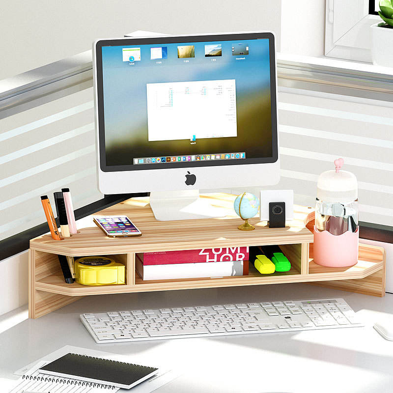 ลิดาขาตั้งจอคอมพิวเตอร์แบบไม้ทรงสามเหลี่ยมมุมโค้งสองชั้นสำหรับจอแสดงผลคอมพิวเตอร์ในสำนักงาน