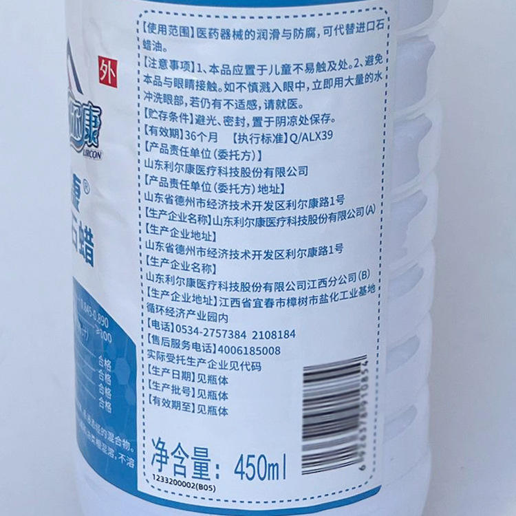 น้ำมันพาราฟินเหลว Liercon 450 มล. น้ำมันแร่สำหรับใช้ในครัวเรือน สำหรับใช้ทางนรีเวชและลำไส้