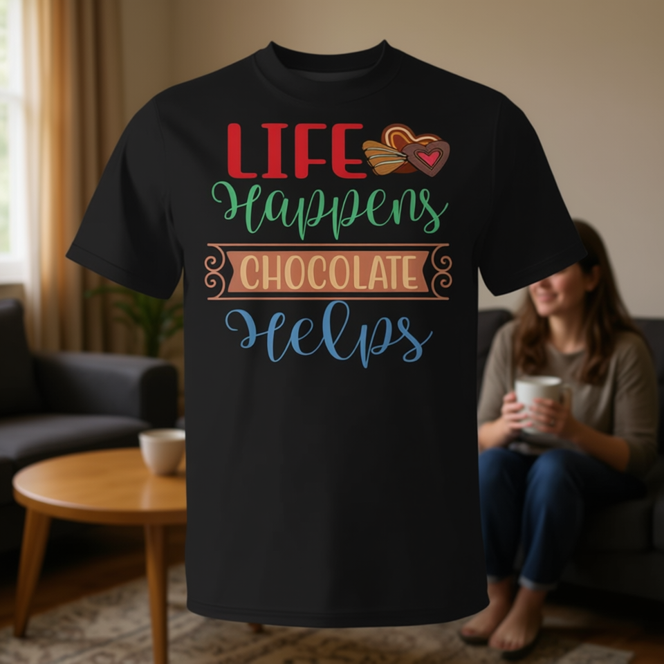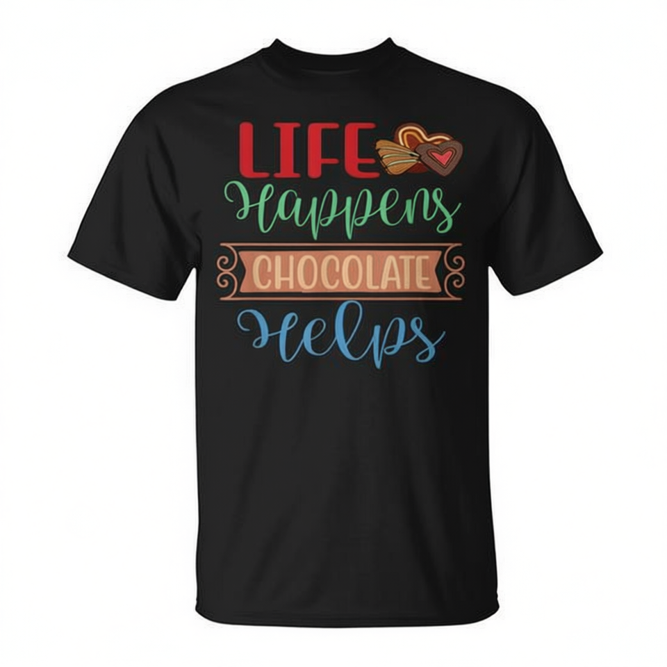 เสื้อยืด Life Happens Chocolate Helps สำหรับผู้ใหญ่ คอกลม แขนสั้น เสื้อผ้าส่งเสริมการขาย