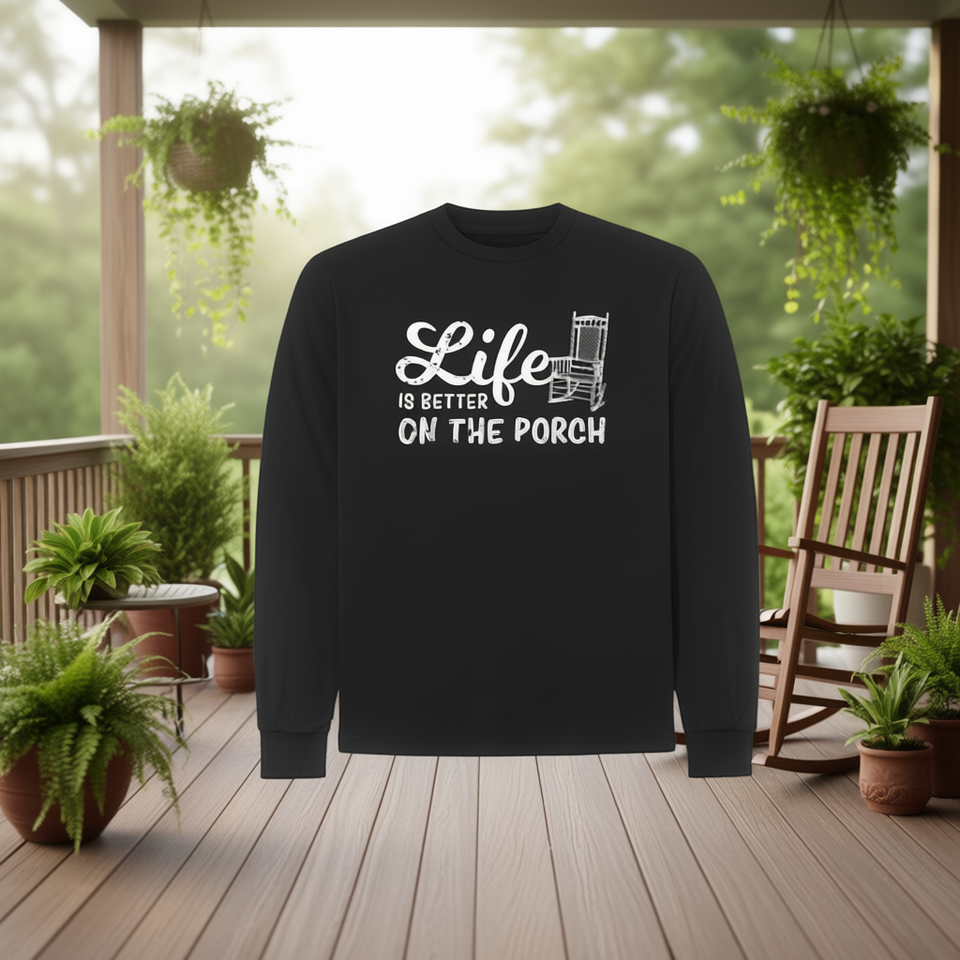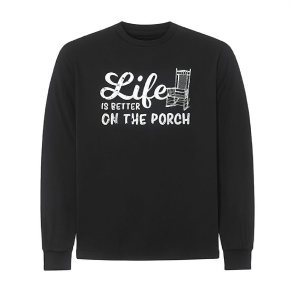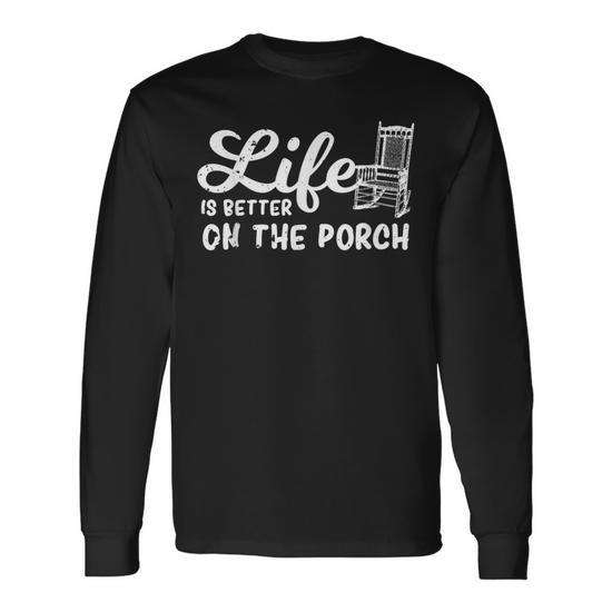 ชีวิตจะดีขึ้นเมื่ออยู่บนระเบียง เสื้อยืดแขนยาวลายกราฟิกเก้าอี้