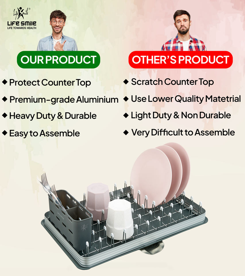 ชั้นวางจานแบบชั้นเดียว Life Smile พร้อมที่ใส่ช้อนส้อม ดีไซน์แบบไฮบริด ระบบระบายน้ำ และฐานป้องกันรอยขีดข่วน