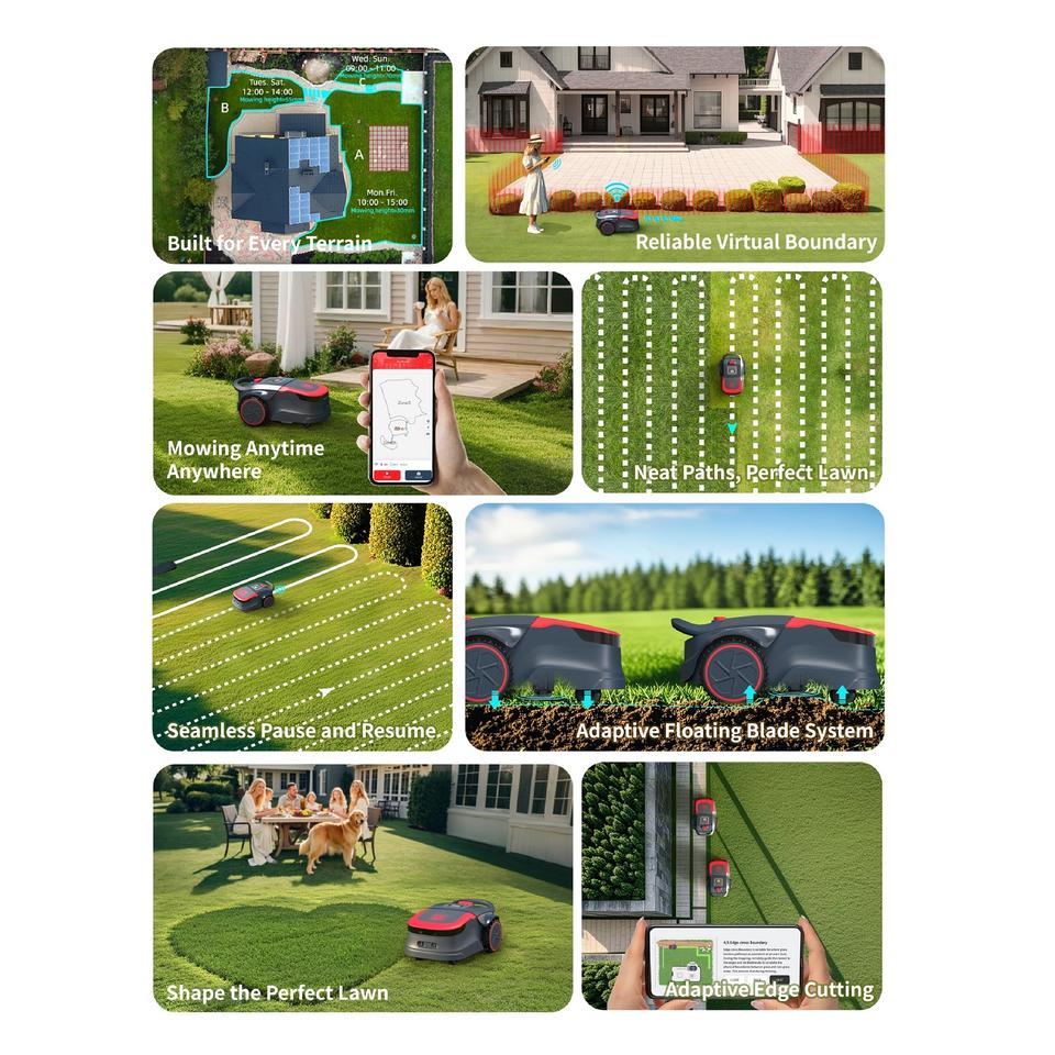 เครื่องตัดหญ้าอัตโนมัติแบบไร้สาย ใช้แบตเตอรี่ ระบบ RTK มองเห็นภาพ 3 มิติ หลีกเลี่ยงสิ่งกีดขวาง ไม่ต้องใช้ลวดกำหนดขอบเขต พร้อมใบมีดฟรีตลอดอายุการใช้งาน ระดับอุตสาหกรรม สำหรับงาน DIY