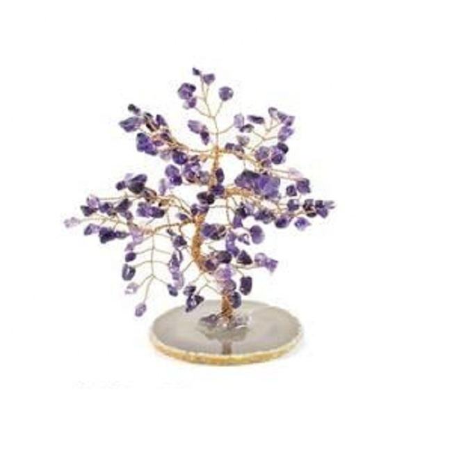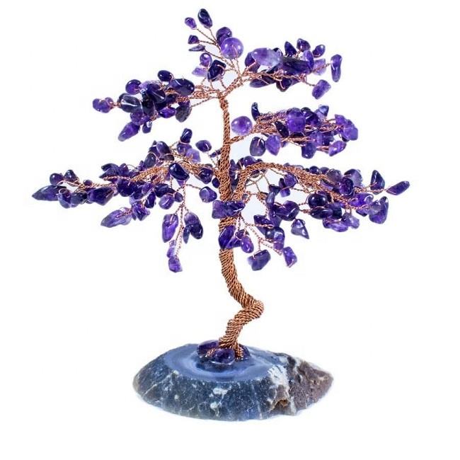 ต้นไม้จริงประดับคริสตัลธรรมชาติ,ของตกแต่งเสริมฮวงจุ้ยต้นไม้แห่งความโชคดีทำจากลวดเงินอเมทิสต์สำหรับเป็นของขวัญตกแต่ง