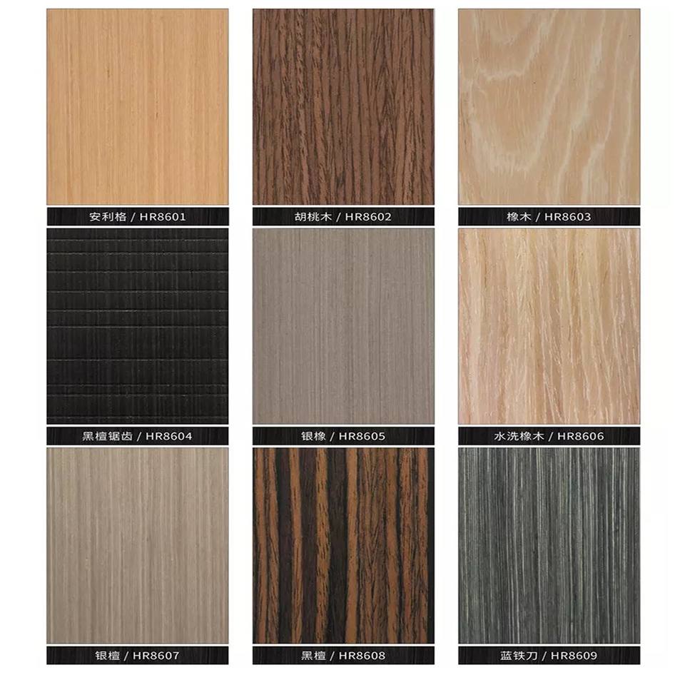กระดาษวีเนียร์เมลามีนที่มีลักษณะเหมือนจริง พร้อมเอฟเฟกต์สีหลากหลาย ทนทานและเหมาะสำหรับเฟอร์นิเจอร์ห้องนั่งเล่น