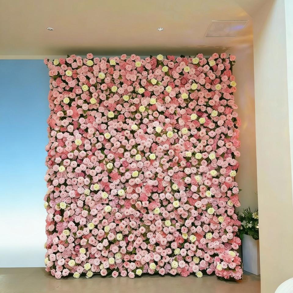 ผนังดอกไม้ประดิษฐ์เสมือนจริง ขนาด 8x8 ฟุต สำหรับตกแต่งงานแต่งงาน งานเลี้ยง งานอีเว้นท์ และฉากหลัง