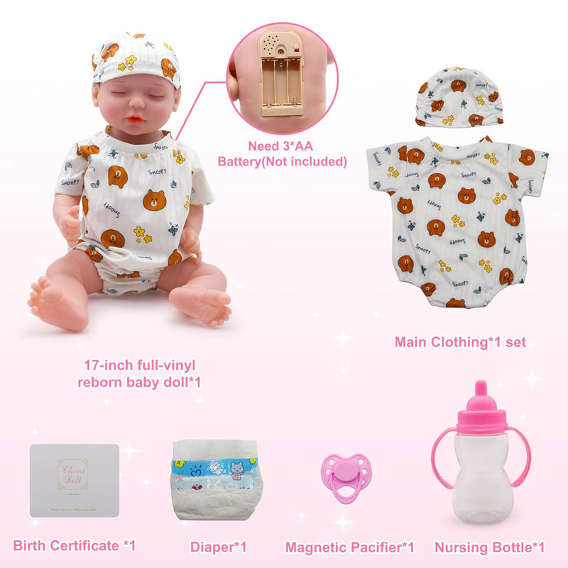 ตุ๊กตาทารกเกิดใหม่เหมือนจริงตุ๊กตาทารกแบบอินเทอร์แอกทีฟขนาด17นิ้วไวนิลนิ่มใช้ป้อนอาหารได้เหมือนจริงสำหรับเด็กแรกเกิด