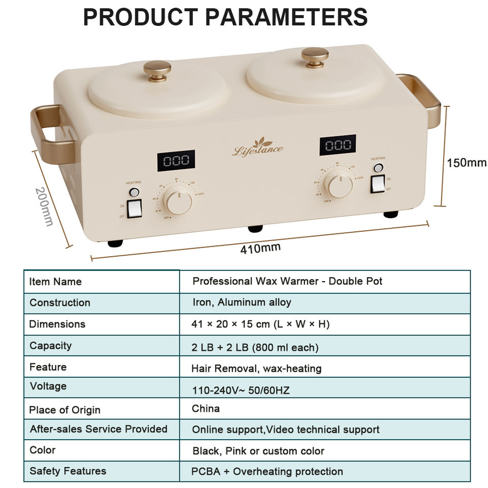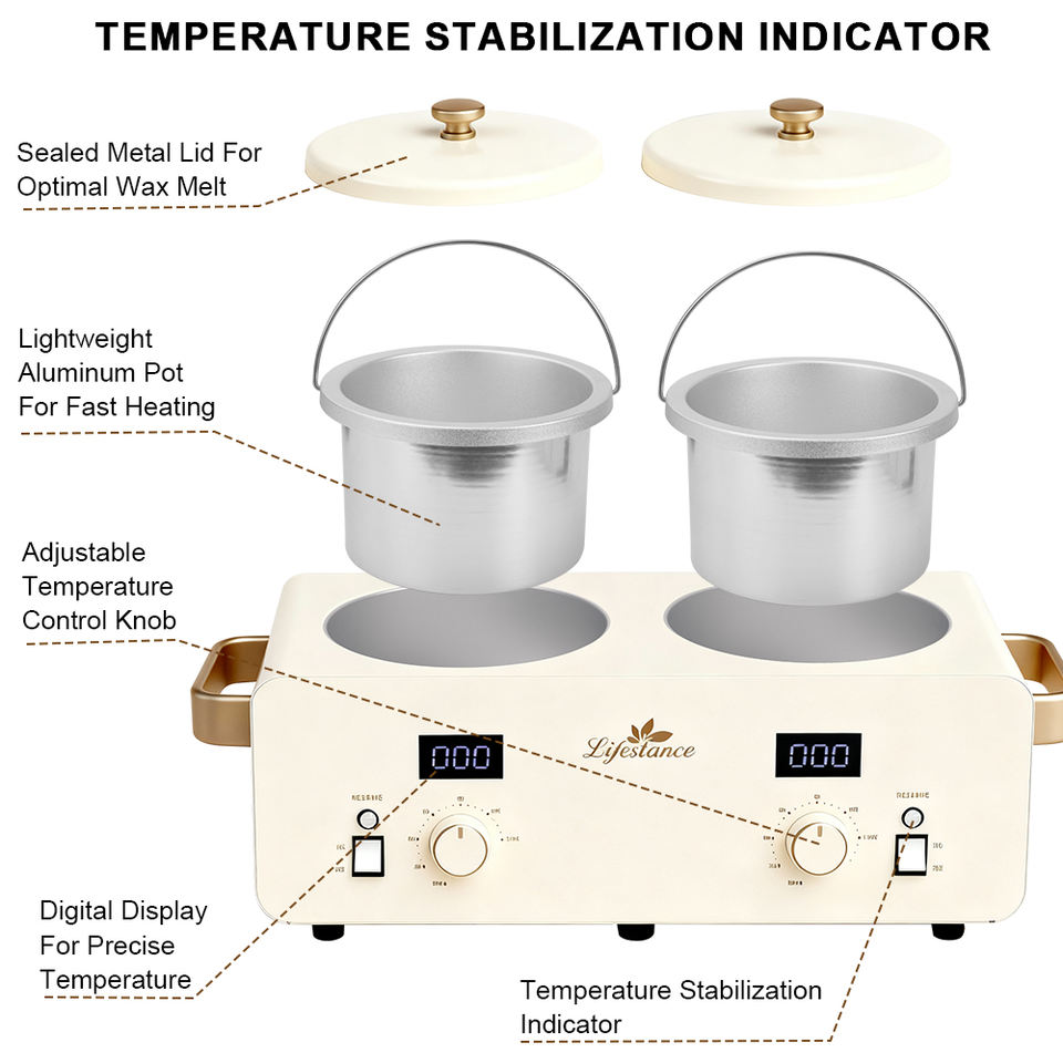 เครื่องทำความร้อนแว็กซ์โลหะแบบสองช่อง ขนาด 500 มล. ยี่ห้อ Lifestance Professional สำหรับกำจัดขนบริเวณใบหน้า หน้าอก มือ เท้า และร่างกาย เหมาะสำหรับร้านเสริมสวย/สปา