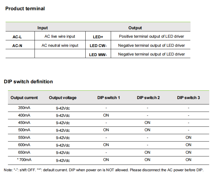 250-1050 มิลลิแอมป์กระแสไฟขาออก