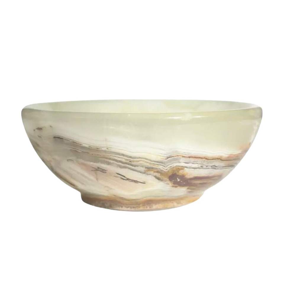 ชามผลไม้หินออนิกซ์สีเบจอ่อนแกะสลักลายธรรมชาติ ถาดกลมทำมือ ขัดเงา ตกแต่งโต๊ะสไตล์มินิมอลหรูหรา