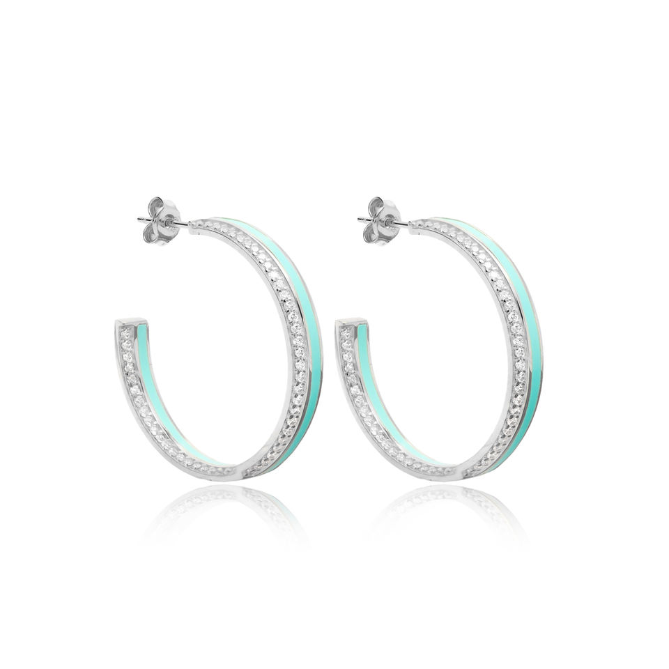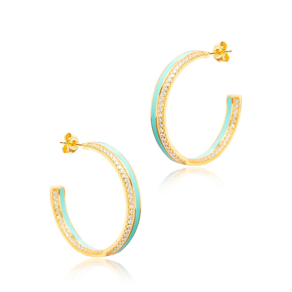 ต่างหูห่วงหิน CZ ใสเคลือบสีน้ําเงินอ่อนเครื่องประดับเงินแท้ 925 ทําด้วยมือตุรกี