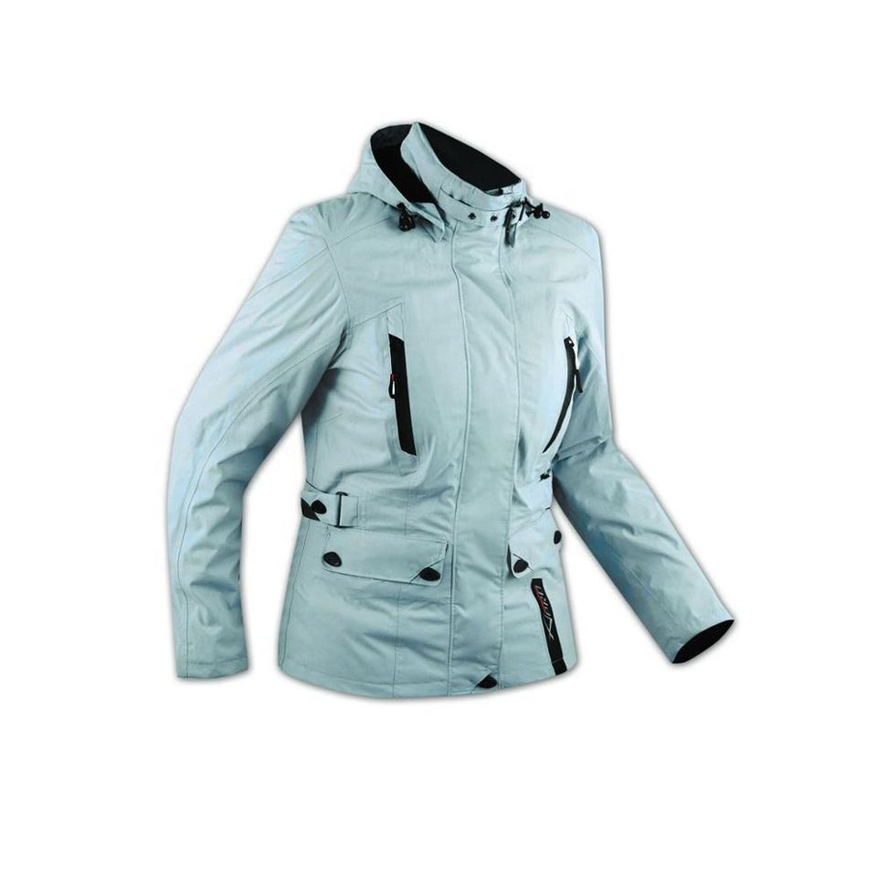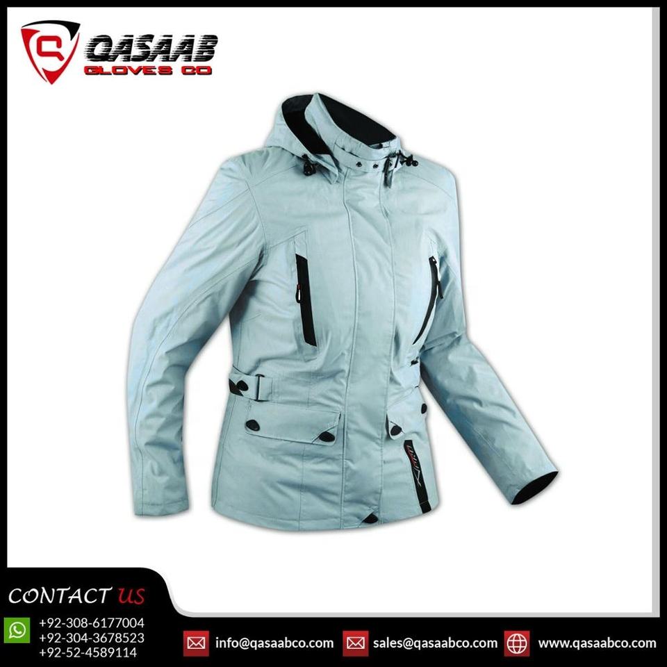 สีฟ้าแสงผู้หญิงสิ่งทอโลโก้ที่กําหนดเองขายส่งกีฬารถจักรยานยนต์ Cordura ฤดูหนาวผู้หญิงรถมอเตอร์ไซด์ Cordura แจ็คเก็ต