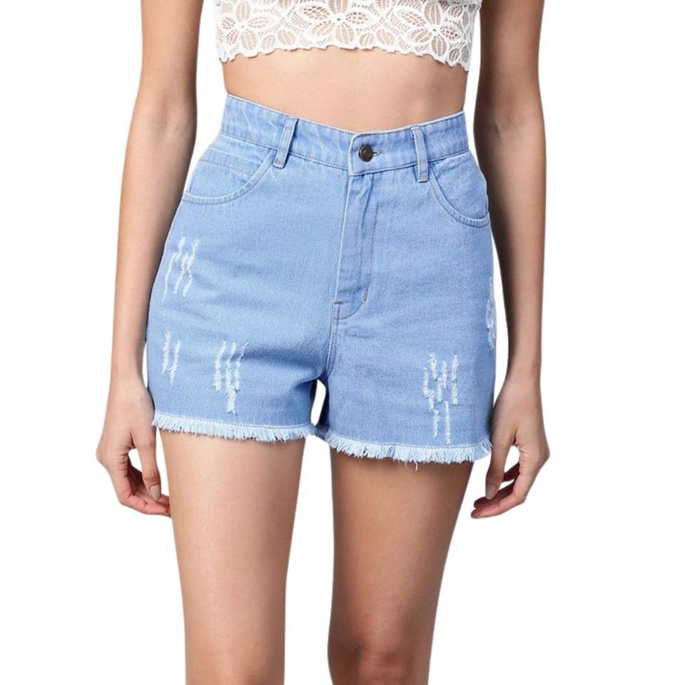 กางเกงยีนส์ขาสั้นสีฟ้าอ่อน เอวสูง ทรงตรง สำหรับผู้หญิง สไตล์คลาสสิก เหมาะสำหรับชุดฤดูร้อน