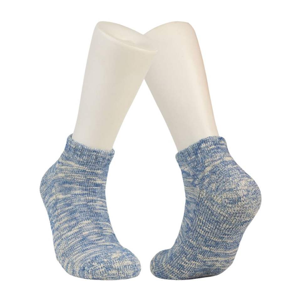ถุงเท้าข้อสั้นสีฟ้าอ่อนลายมาร์เลด ผลิตจากผ้าฝ้ายออร์แกนิกที่ยั่งยืน ป้องกันกลิ่น สัมผัสนุ่ม ใส่ได้ทุกวันในช่วงฤดูร้อน