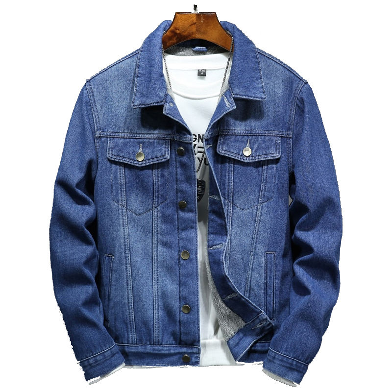 แจ็กเก็ตฤดูหนาวของผู้ชายสีฟ้าอ่อนขนาดพลัสไซส์ & เสื้อโค้ทผ้าเดนิมที่อบอุ่นขนแกะหนาขึ้นมาใหม่แจ็กเก็ตสไตล์คาวบอย