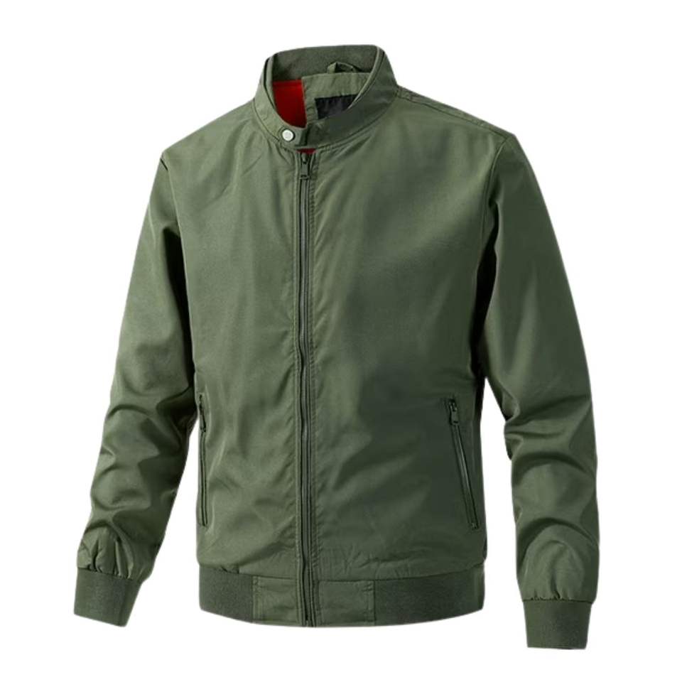 แจ็คเก็ตบอมเบอร์สีฟ้าอ่อนสำหรับผู้ชาย สไตล์เบสบอลลำลอง แจ็คเก็ตวาร์ซิตี้ คุณภาพสูง กันลม เสื้อผ้ากีฬากลางแจ้ง รับสกรีนโลโก้