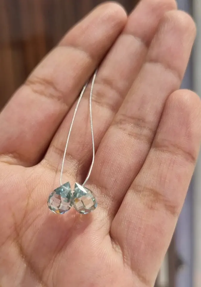 ยาหยอดตา Moissanite สีน้ําเงินอ่อนพร้อมการเจาะตัดที่ยอดเยี่ยม VVS ความชัดเจนเพชรรูปร่าง Briolette ทําสําหรับต่างหู Moissanite