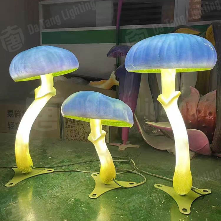 โคมไฟตกแต่งเรซิ่นรูปเห็ดสีฟ้าอ่อน พร้อมลายเพ้นท์มือ สำหรับตกแต่งสวน สวนสาธารณะ และเทศกาลต่างๆ