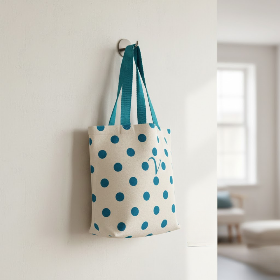 กระเป๋าผ้าใบลายจุดสีฟ้าอ่อน แบบถือ นำกลับมาใช้ใหม่ได้ เป็นมิตรกับสิ่งแวดล้อม สำหรับใส่ของช้อปปิ้ง ทันสมัย ใช้ได้ทุกวัน สไตล์ตลาด R.D Bag House