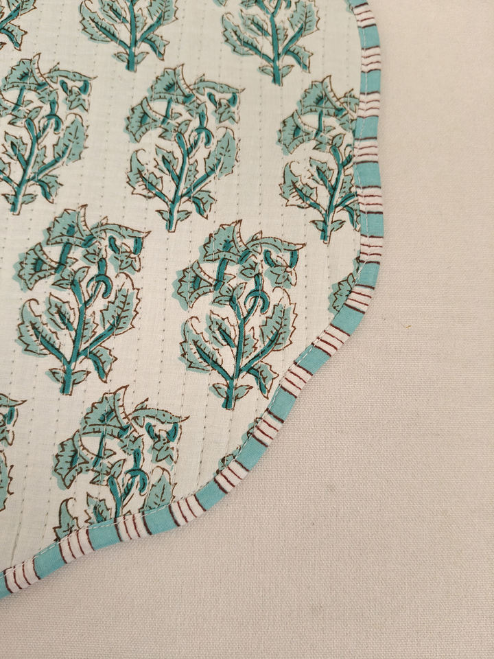แผ่นรองจานทรงกลม/สี่เหลี่ยม/วงรี ลายเสือดาว สีฟ้าอ่อน ทันสมัย ผ้าฝ้ายแบบกลับด้านได้ แบบเย็บติดกัน บาง ปรับแต่งได้ ซักเครื่องได้