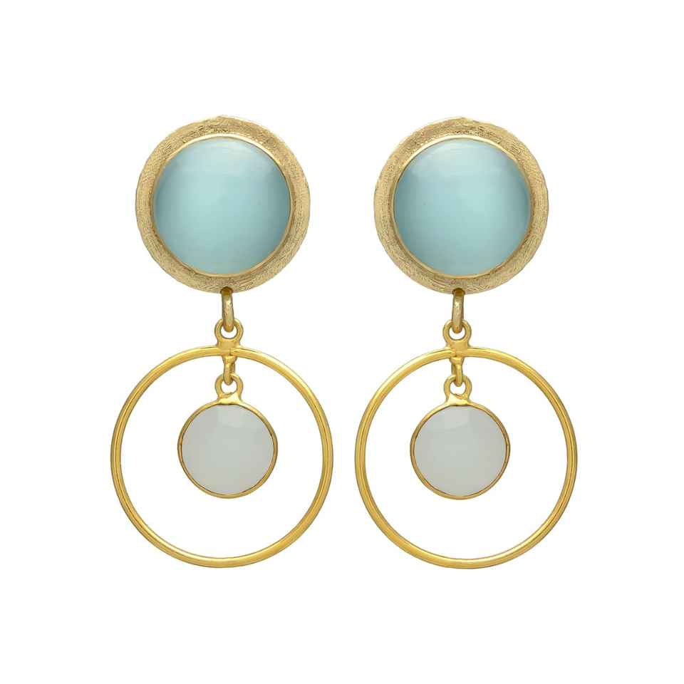 ต่างหูเม็ดเดี่ยวชุบทองมูนสโตนสีฟ้าอ่อน