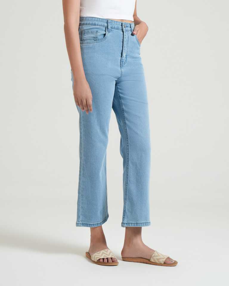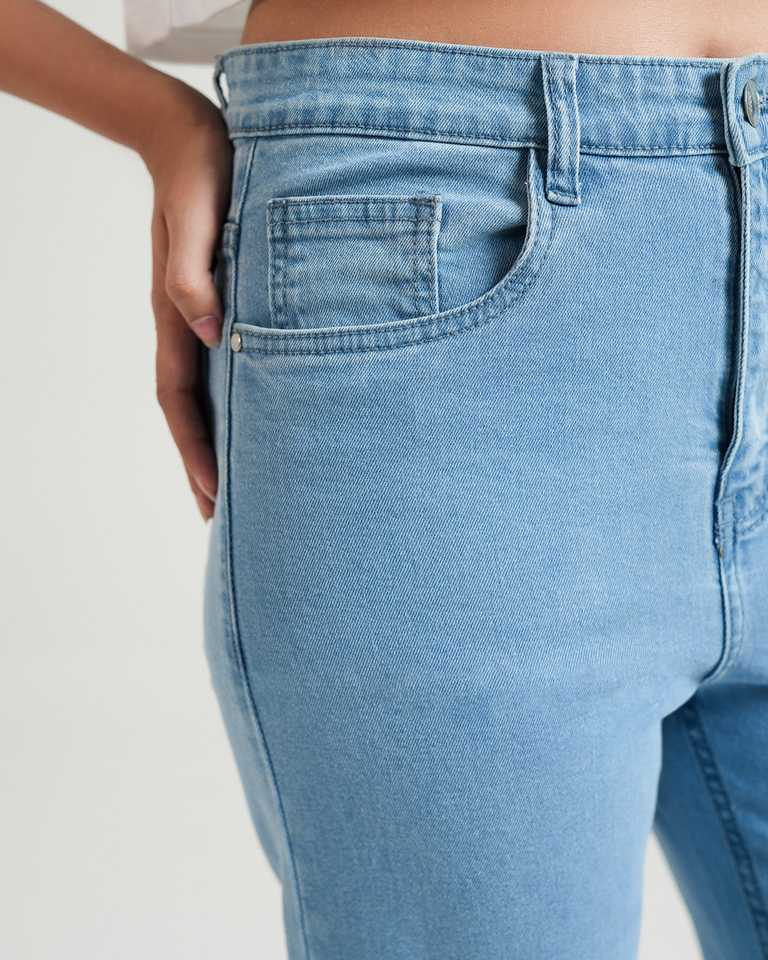 กางเกงทรงดินสอของผู้หญิงสีฟ้าอ่อนผ้าเดนิมวินเทจเอวสูงแฟชั่นสตรีทแวร์แห้งเร็วระบายอากาศได้ดี