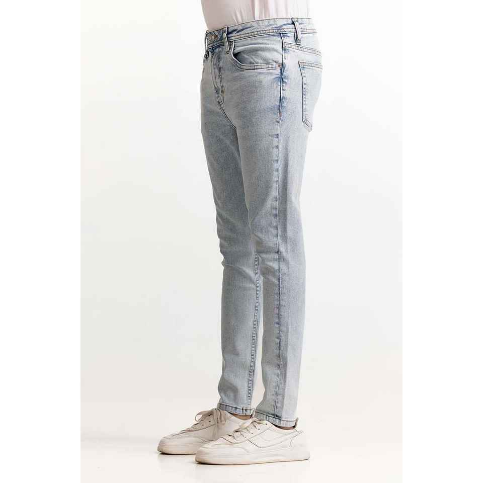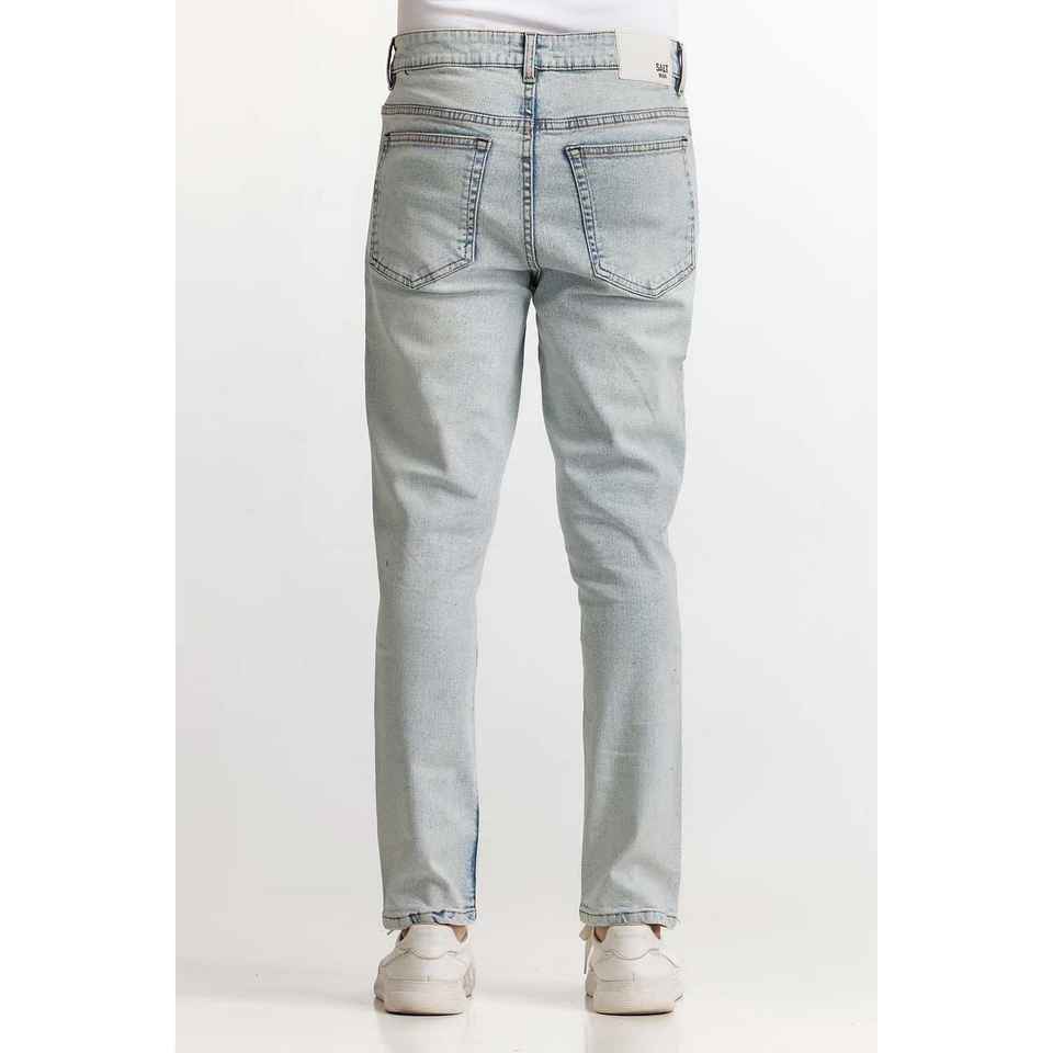 กางเกงยีนส์ทรงตรงสไตล์วินเทจ Y2K สีฟ้าอ่อน เอวกลาง ทรงสกินนี่ ผ้ายีนส์ปักลายสีเข้ม รุ่นถักนิต หมายเลขรุ่น MNJNSSS24002
