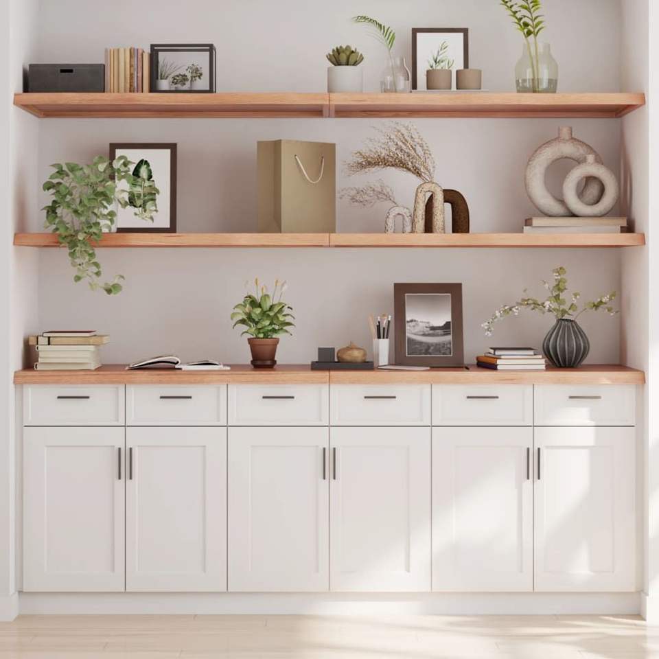 ชั้นวางของติดผนังไม้โอ๊คสีน้ำตาลอ่อน ขนาด 78.7 นิ้ว X 19.7 นิ้ว X 1.6 นิ้ว