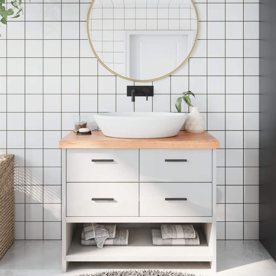 เคาน์เตอร์ห้องน้ำไม้เนื้อแข็งสีน้ำตาลอ่อน 39.4"x19.7"x(0.8"-2.4") ชั้นวางที่ผ่านการปรับสภาพแล้ว