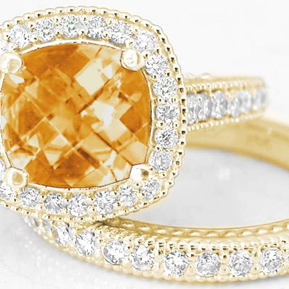 แหวนซิทรินสีอ่อน แหวนประจำเดือนพฤศจิกายน แหวนทองคำขาว แหวนหมั้นซิทรินวินเทจ