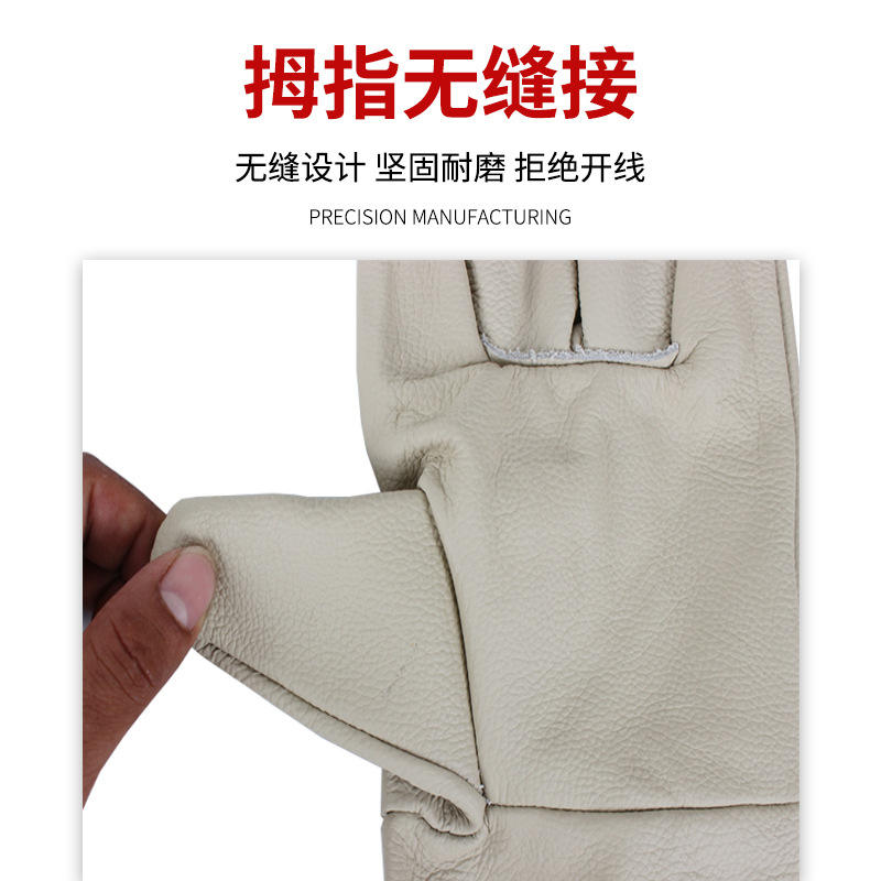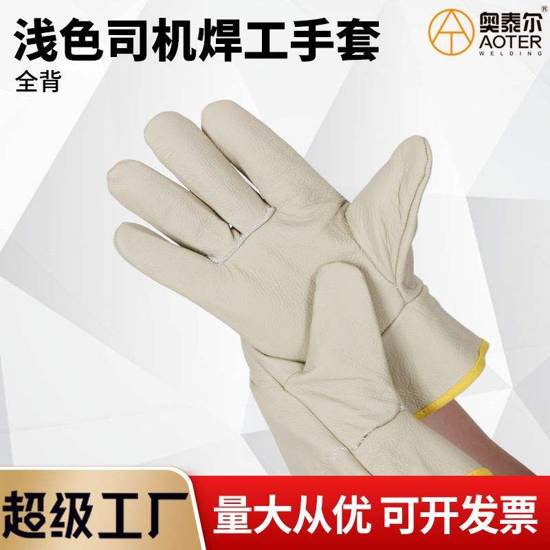 ถุงมือเชื่อมสีอ่อน หนังแท้ทั้งตัว พร้อมแผ่นหลังหนา ทนความร้อน ทนการสึกหรอ สำหรับคนขับรถ ถุงมือทำงาน