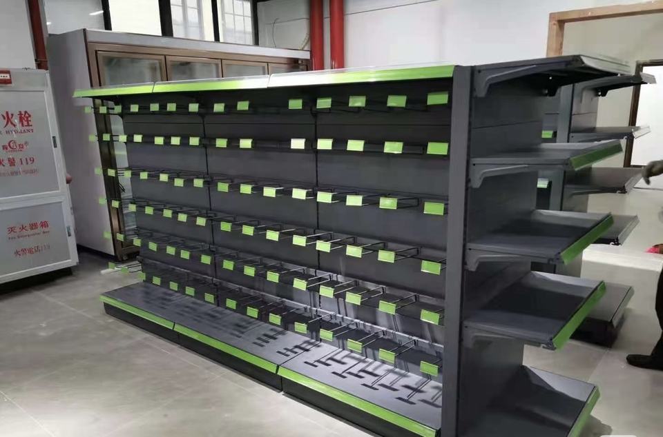ชั้นวางสินค้าซุปเปอร์มาร์เก็ตแบบกอนโดลาสองด้าน รุ่นเบา น้ำหนักเบา แบบมีรูระบายอากาศ เคลือบด้วยอีพ็อกซี่ 5 ชั้น ผลิตจากเหล็กแข็งแรงทนทาน เหมาะสำหรับร้านค้า
