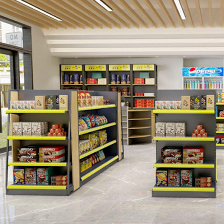 ชั้นวางของในซูเปอร์มาร์เก็ตแบบเบาชั้นวางของสำหรับร้านค้าปลีกทำจากไม้โลหะชั้นวางของสำหรับร้านขายของชำและร้านสะดวกซื้อ