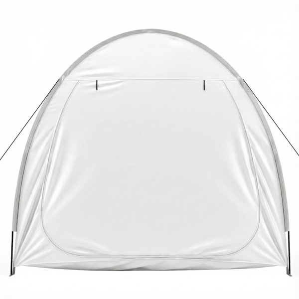โรงเก็บจักรยานทรงโค้งสีเทาอ่อน ขนาด 6.8x4.9 ฟุต ผ้าใบเคลือบ PU สีเงิน 210D โครงไฟเบอร์กลาสสีดำ ด้านหน้าแบบคู่ สำหรับตั้งแคมป์