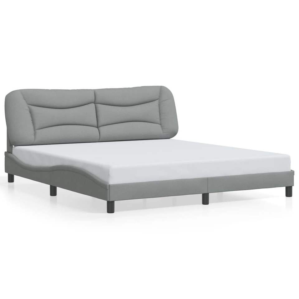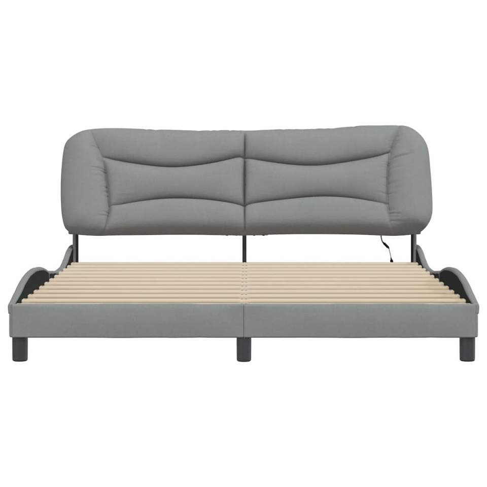 โครงเตียงหุ้มผ้าสีเทาอ่อน ขนาด 72"x83.9" รุ่น 'Hvar' พร้อมไฟ LED ไม่รวมที่นอน