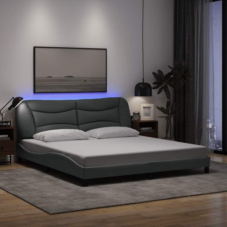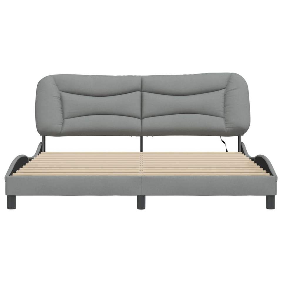 โครงเตียงหุ้มผ้าสีเทาอ่อน ขนาด 76"x79.9" รุ่น 'ฮวาร์' พร้อมไฟ LED ไม่รวมที่นอน