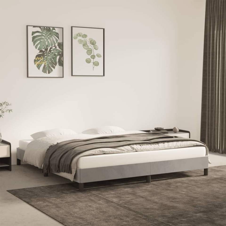 โครงเตียงหุ้มกำมะหยี่สีเทาอ่อน ขนาด 76"x79.9" รุ่น King ไม่รวมที่นอน