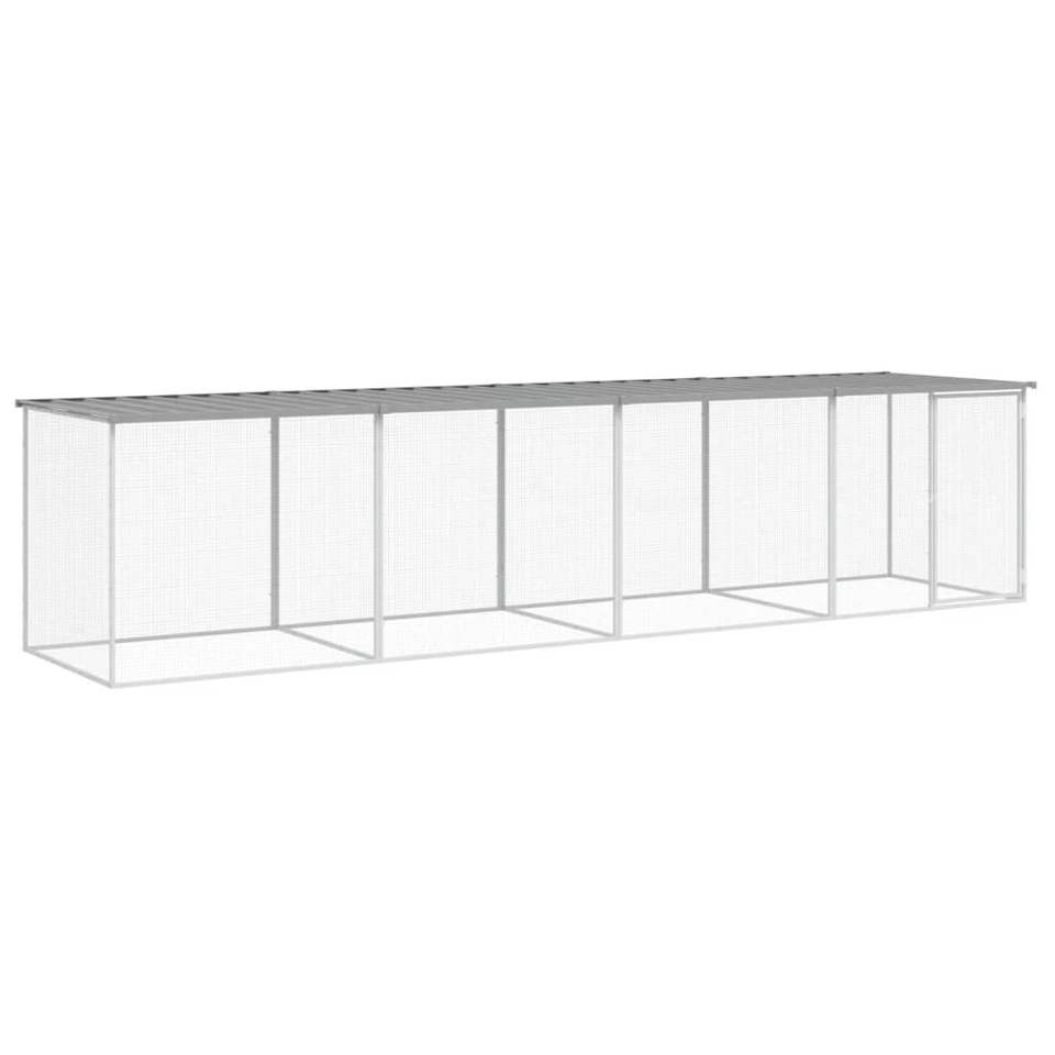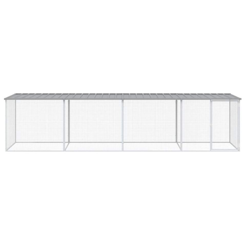 กรงไก่เหล็กชุบสังกะสีสีเทาอ่อนพร้อมหลังคา ขนาด 158.7"x38.6"x35.4" สำหรับสัตว์เลี้ยง